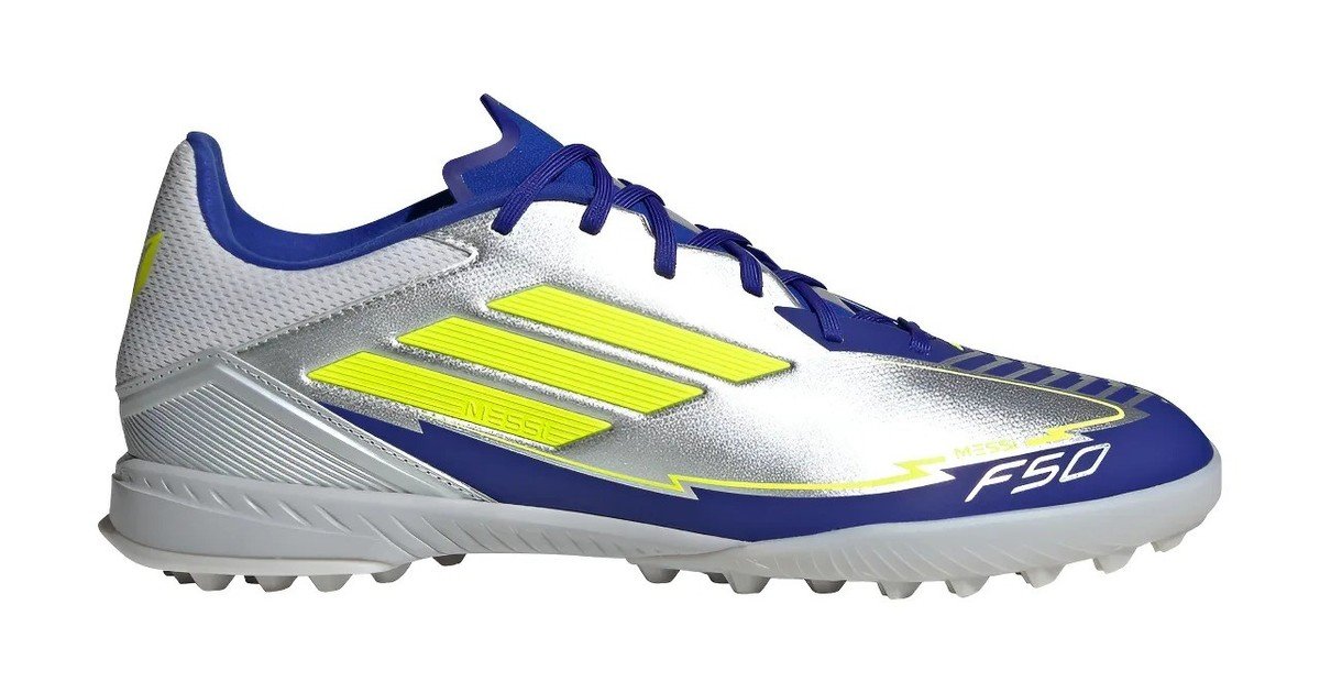 ¡50% OFF y 4.9 estrellas! Los F50 League Tf Messi de adidas, la elegancia plateada para dominar el fútbol 5
