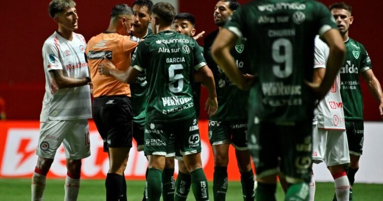 El zaguero de Sarmiento había recibido, inicialmente, una segunda amonestación. Pero el referí Gariano, tras la convocatoria del VAR, cambió a expulsión.