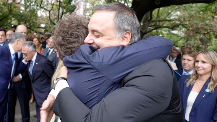 El Presidente se mostró junto al jefe de Gabinete durante la conmemoración en Plaza San Martín, en un gesto político en plena polémica por las denuncias judiciales.